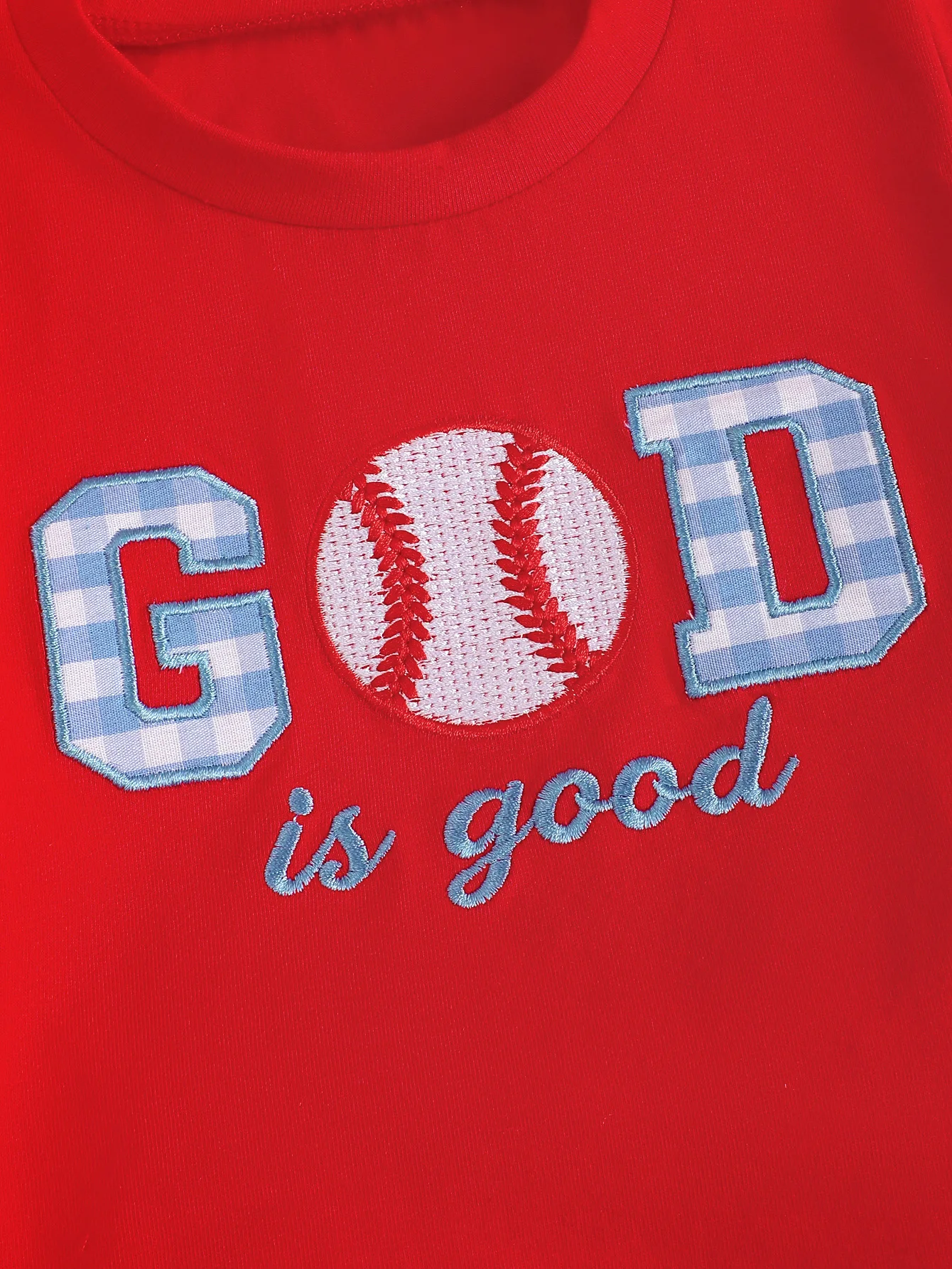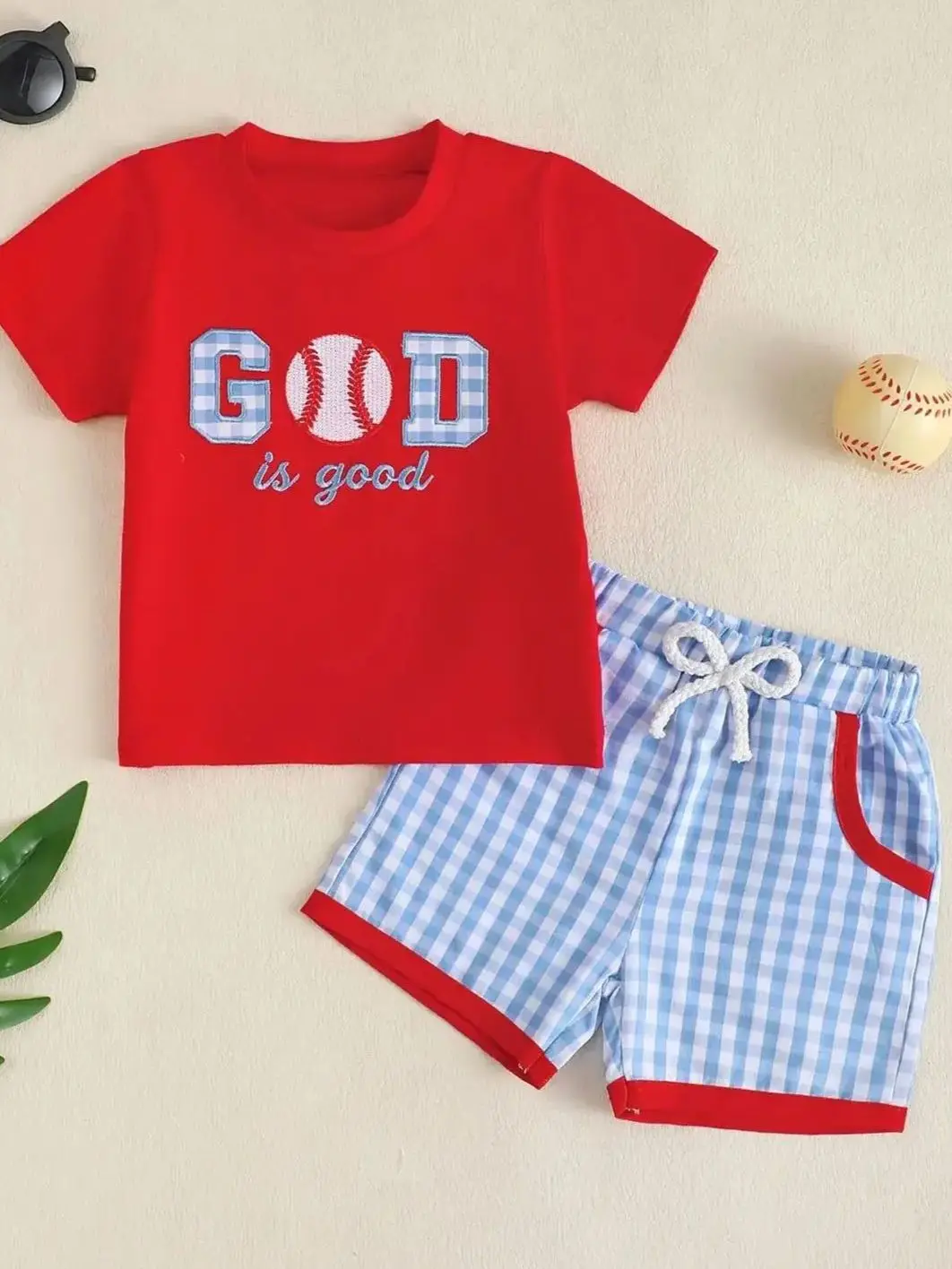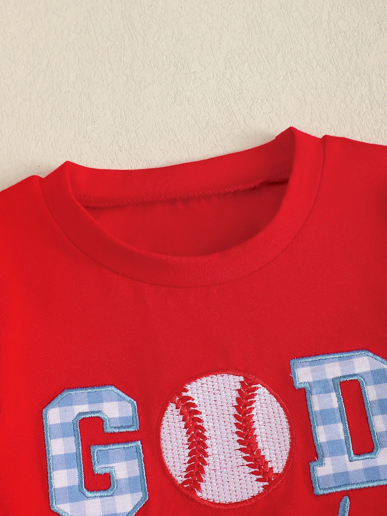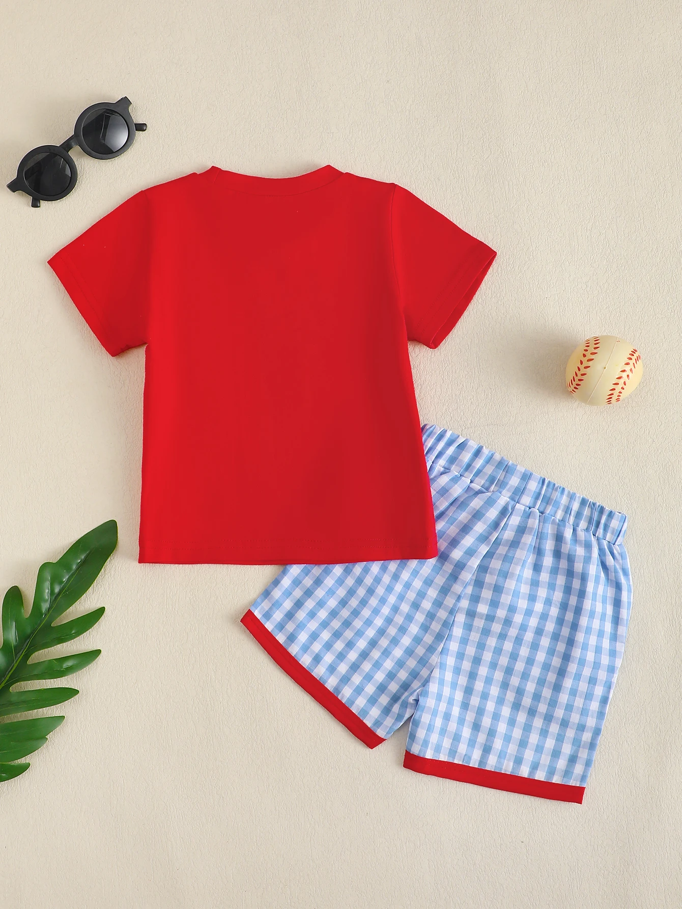 The casual style with a baseball pattern and letters adds a fun touch to your toddler's summer wardrobe.